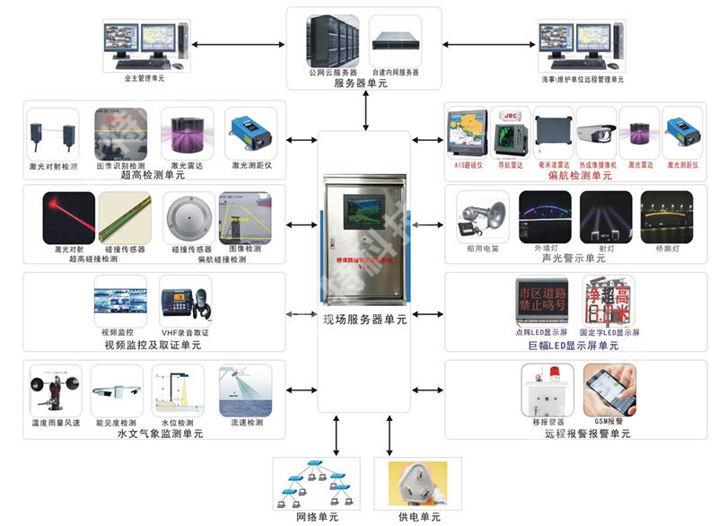 橋梁防撞智能主動預(yù)警系統(tǒng)是一個多功能的橋梁船舶防撞綜合監(jiān)控系統(tǒng),采用激光對過往船只探測、熱成像監(jiān)測船舶是否偏離航道、電子圍欄預(yù)警航道偏離、AIS船舶身份識別預(yù)警、VHF無線電預(yù)警等現(xiàn)代智能技術(shù),通過視頻監(jiān)控、無線數(shù)據(jù)傳輸、聲光報(bào)警等方式對橋梁防船撞做出提前預(yù)警。